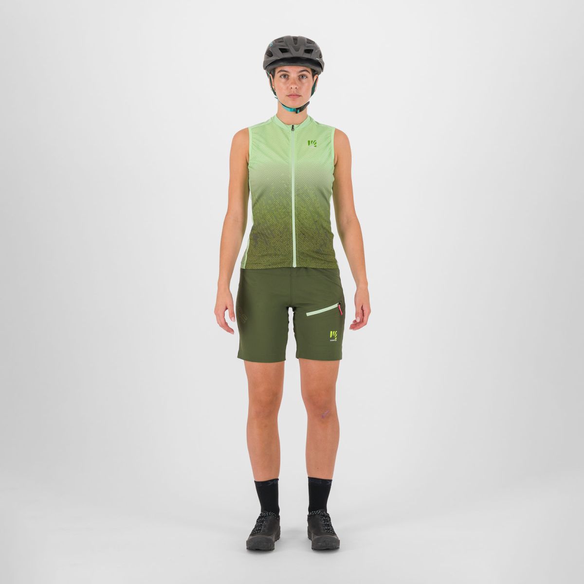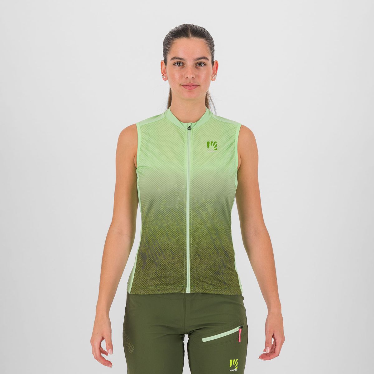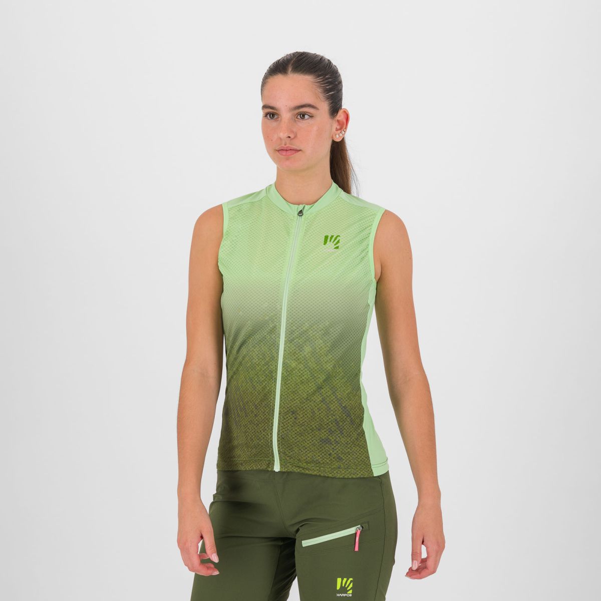 Dámsky MTB dres bez rukávov Karpos Verve Evo je vyhotovený z dvojice funkčných materiálov, ktoré poskytujú optimálny komfort aj počas celodenných výletov. Na bokoch a ramenách sa nachádza hebký, elastický materiál, ktorý výborne chladí a zaisťuje priliehavé sedenie. Lepšiu priedušnosť a odvádzanie potu od pokožky zabezpečuje dierkovaný materiál na prednej a zadnej strane. Pre odloženie si všetkých, potrebných vecí je dres v zadnej časti vybavený 2 vreckami a reflexným logom.