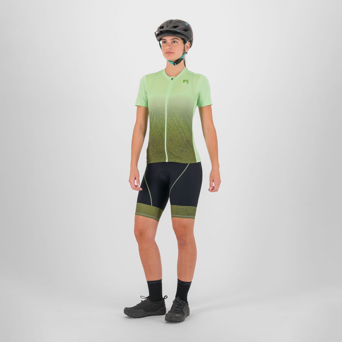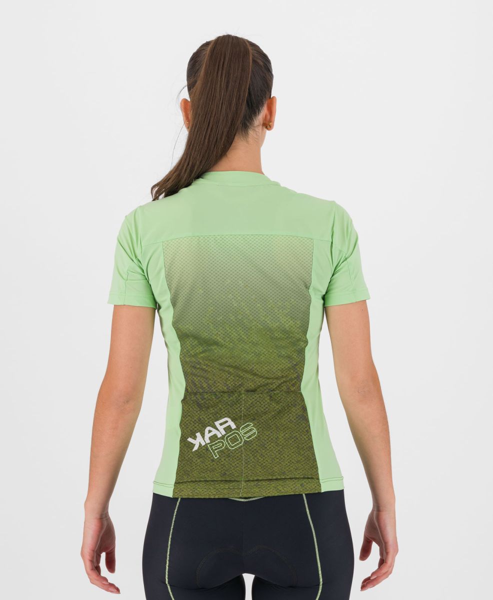 Dámsky dres na horskú cyklistiku Karpos Verve Evo je vyhotovený z dvojice funkčných materiálov, ktoré poskytujú optimálny komfort aj počas celodenných výletov. Na bokoch, ramenách a rukávoch sa nachádza hebký, elastický materiál, ktorý výborne chladí a zaisťuje priliehavé sedenie. Lepšiu priedušnosť a odvádzanie potu od pokožky zabezpečuje dierkovaný materiál na prednej a zadnej strane. Pre odloženie si všetkých, potrebných vecí je dres v zadnej časti vybavený 2 vreckami a reflexným logom.