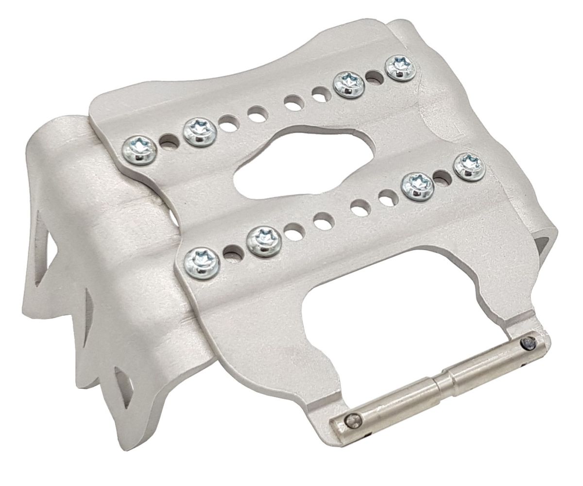 Nastaviteľné mačky na lyže Kreuzspitze RR-S sú inovatívnym riešením pre skialpinistov, ktorí potrebujú spoľahlivú trakciu na zľadovatených alebo tvrdých snehových povrchoch. Tieto stúpacie železá (haršajzny) sa vyznačujú patentovaným systémom, ktorý umožňuje prispôsobiť šírku čeľustí podľa šírky vašich lyží, čo zaručuje univerzálnosť a kompatibilitu s rôznymi modelmi.