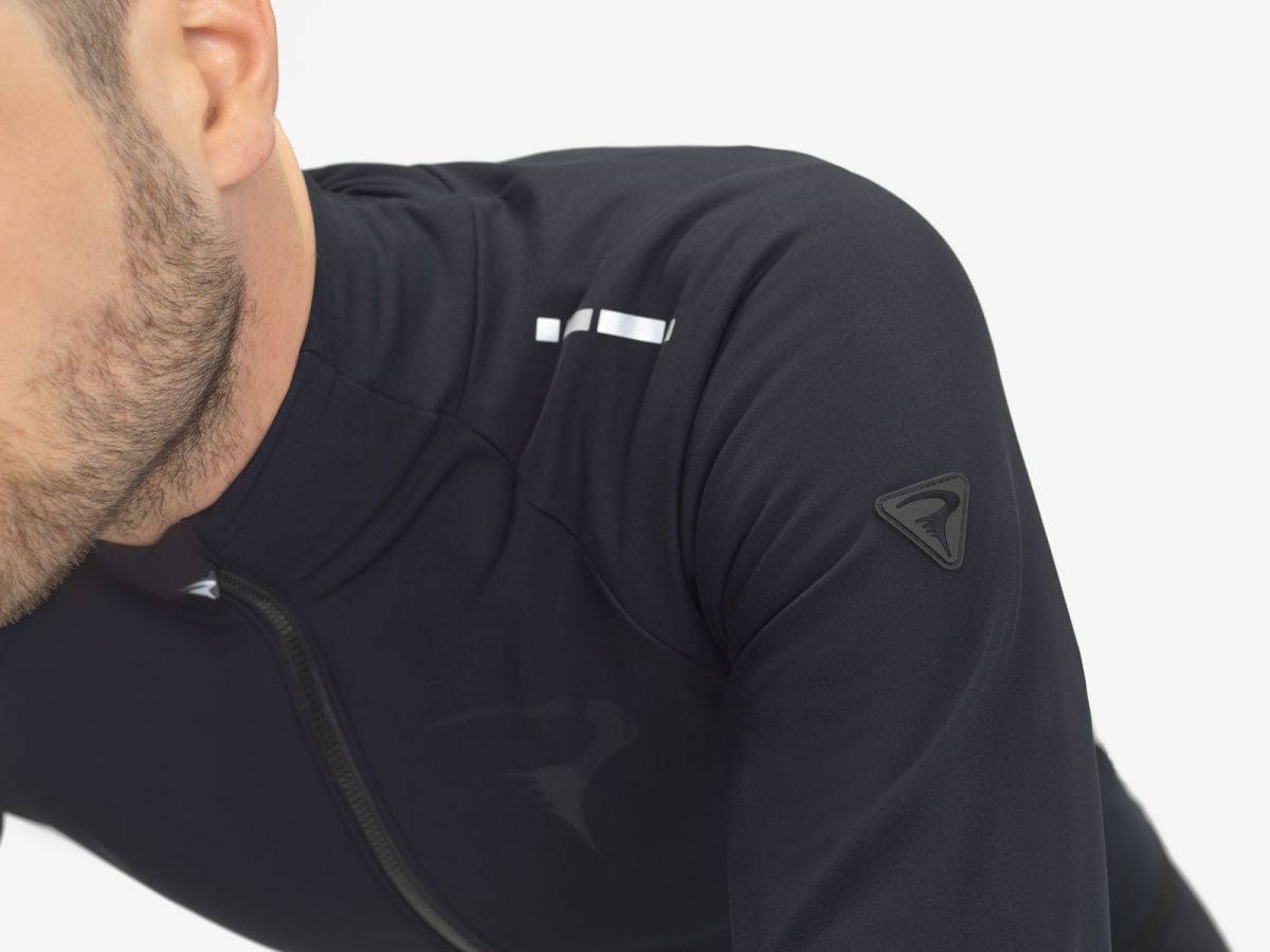 Reflexné prvky a logo na ramenách a chrbte zvyšujú viditeľnosť cyklistu v zhoršených svetelných podmienkach, čo prispieva k bezpečnosti počas jazdy. Tieto prvky sú strategicky umiestnené tak, aby boli viditeľné zo všetkých uhlov. - Výroba