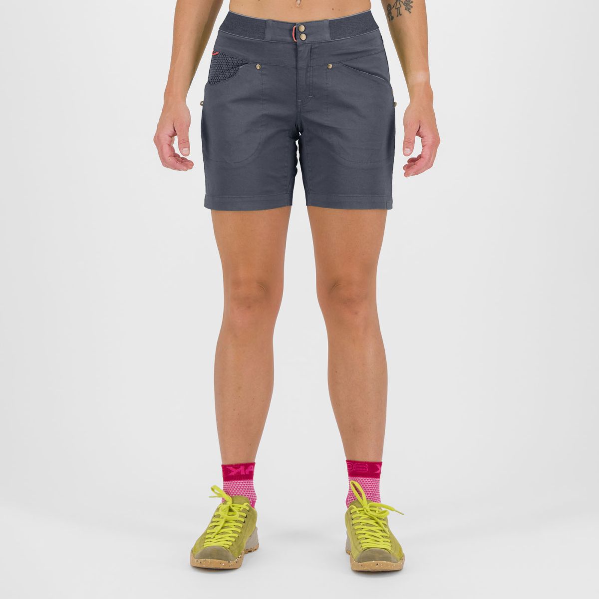 Dámske šortky Karpos Noghera sú vhodné na lezenie, turistiku i bežné nosenie. Charakterizuje ich ľahký, bavlnený materiál, ktorý je mimoriadne priedušný a komfortný a taktiež netradičný strih predných aj zadných vreciek.
