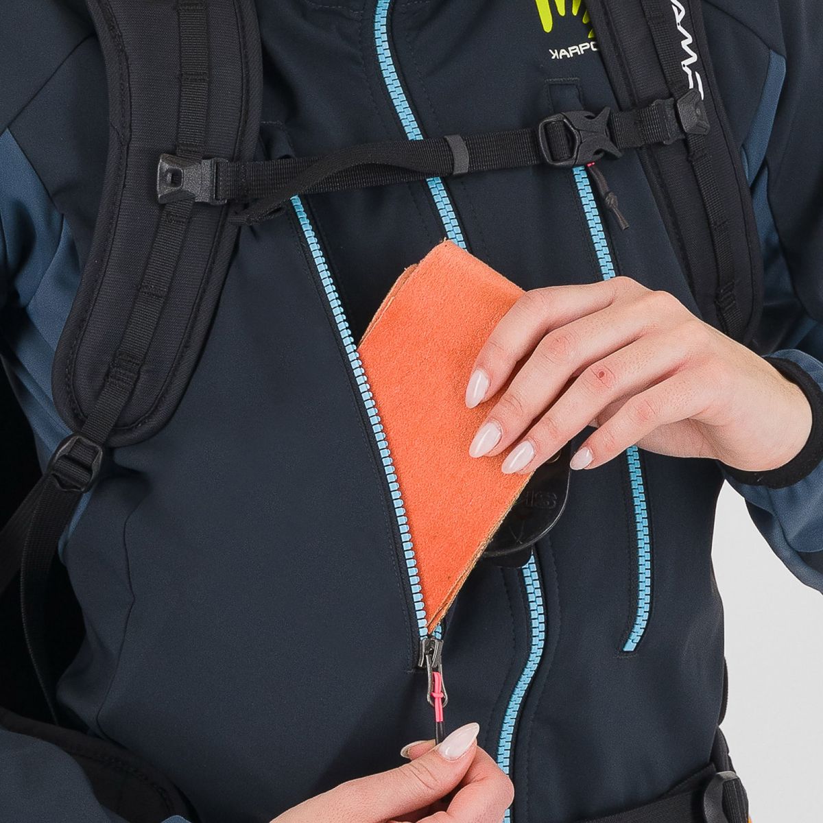- predná strana, horná časť chrbta a rukávov z membránového materiálu GORE-TEX® Infinium