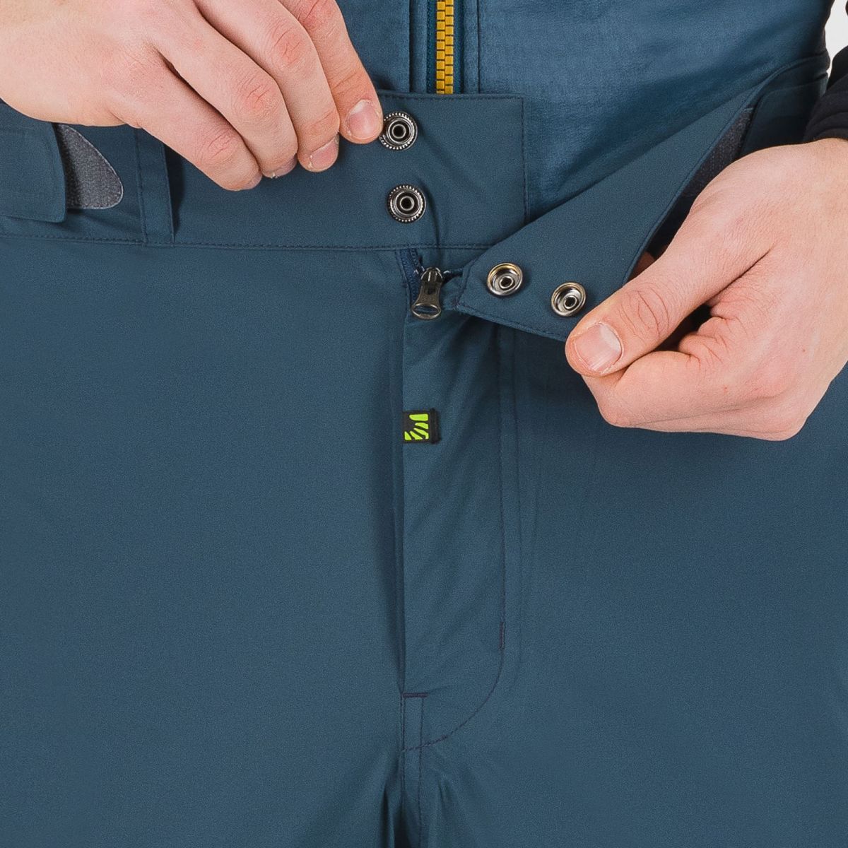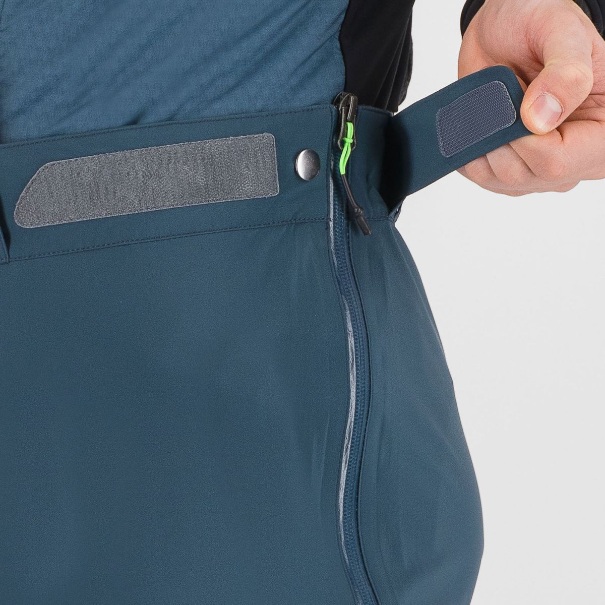 - elastický pás s putkami na opasok, zapínaním pomocou 2 patentných gombíkov a pásikmi so suchým zipsom pre optimálny komfort