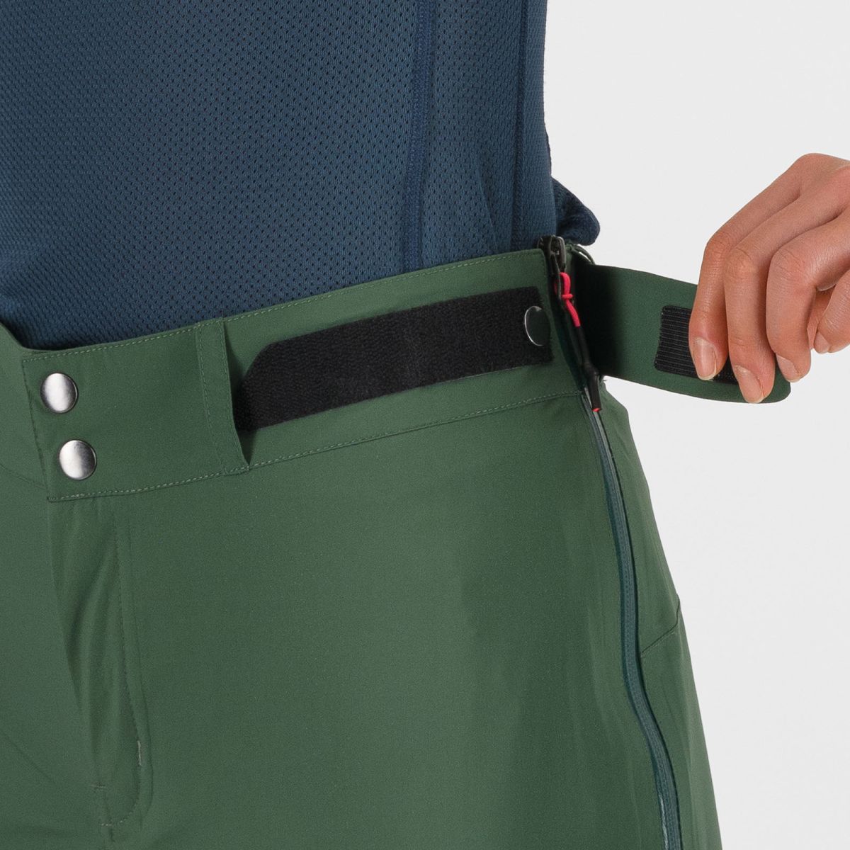- elastický pás s putkami na opasok, zapínaním pomocou 2 patentných gombíkov a pásikmi so suchým zipsom pre optimálny komfort