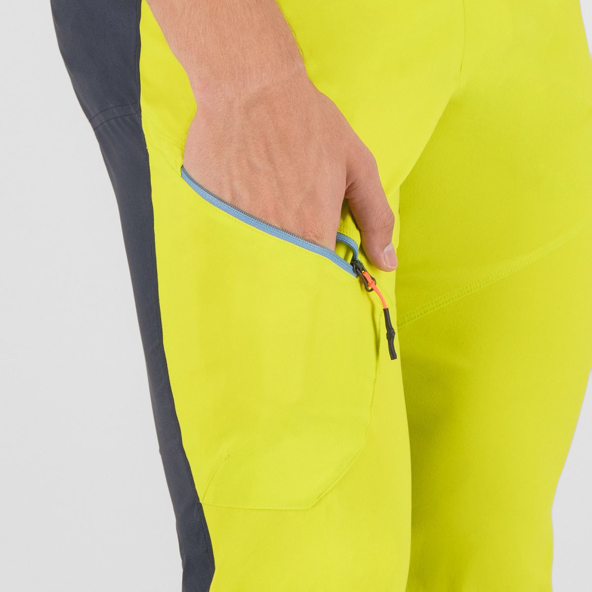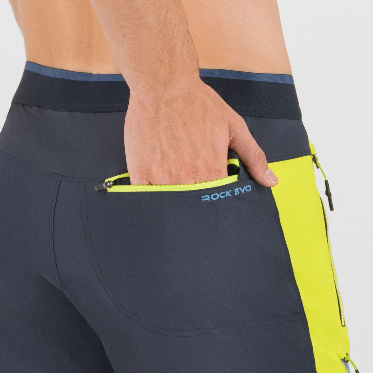 Pánske nohavice Karpos Rock Evo ti poskytnú komfort a voľnosť v pohybe počas akýchkoľvek letných, outdoorových aktivít. Predná strana je vyrobená z príjemného nylonového materiálu, ktorý zabezpečuje ochranu pred UV žiarením UPF40 a vďaka povrchovej úprave DWR ochranu pred vodou a zašpinením. Zadná strana a dolná časť nohavíc sú vyrobené z priedušného obojstranne strečového materiálu, taktiež ošetreného povrchovou úpravou DWR. Na odloženie si osobných vecí slúži až trojica predných a jedno zadné vrecko so zapínanim na zips.