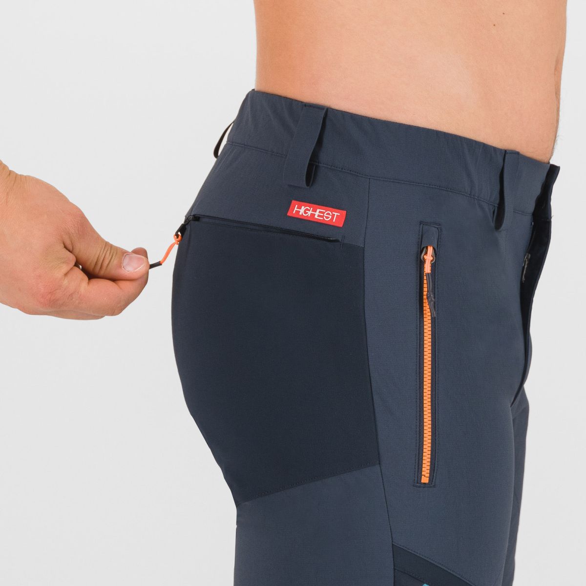 - Jedno bočné vrecko na zips na pravej nohavici – dostupné aj pri použití úväzu, ideálne na mapu, GPS alebo energetickú tyčinku.