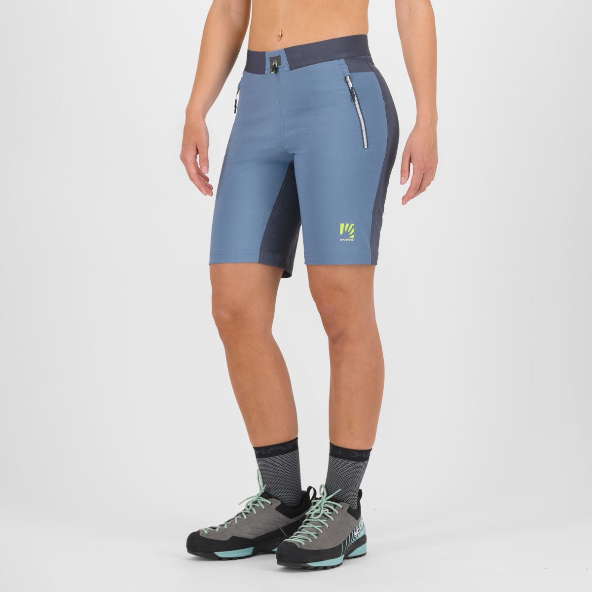 Dámske kraťasy Karpos Rock Evo ti poskytnú komfort a voľnosť v pohybe počas akýchkoľvek letných, outdoorových aktivít. Predná strana je vyrobená z príjemného nylonového materiálu, ktorý zabezpečuje ochranu pred UV žiarením UPF40 a vďaka povrchovej úprave DWR ochranu pred vlhkosťou a zašpinením. Zadná strana je vyrobená z priedušného obojstranne strečového materiálu, taktiež ošetreného vodoodpudivou úpravou DWR. Na odloženie si osobných vecí slúži dvojica vreciek so zapínanim na zips.