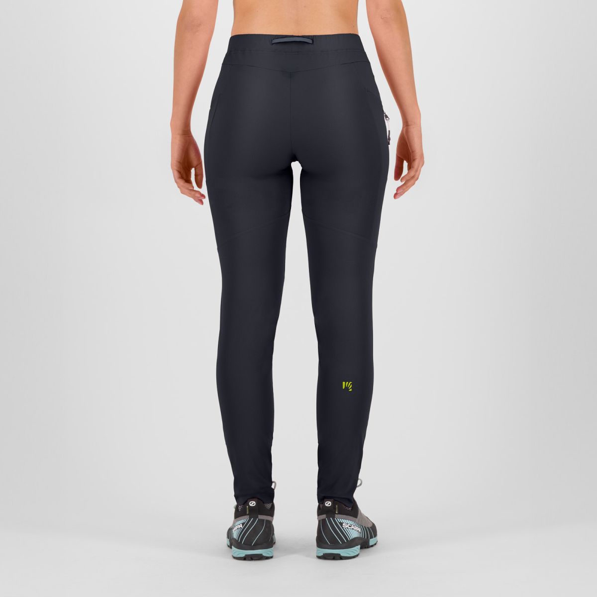 Elastická polyamidová tkanina s DWR úpravou bez PFC ponúka ľahkosť, vysokú priedušnosť a rýchloschnúce vlastnosti, takže legíny sú vhodné na dlhé horské výstupy aj dynamický pohyb v teréne.