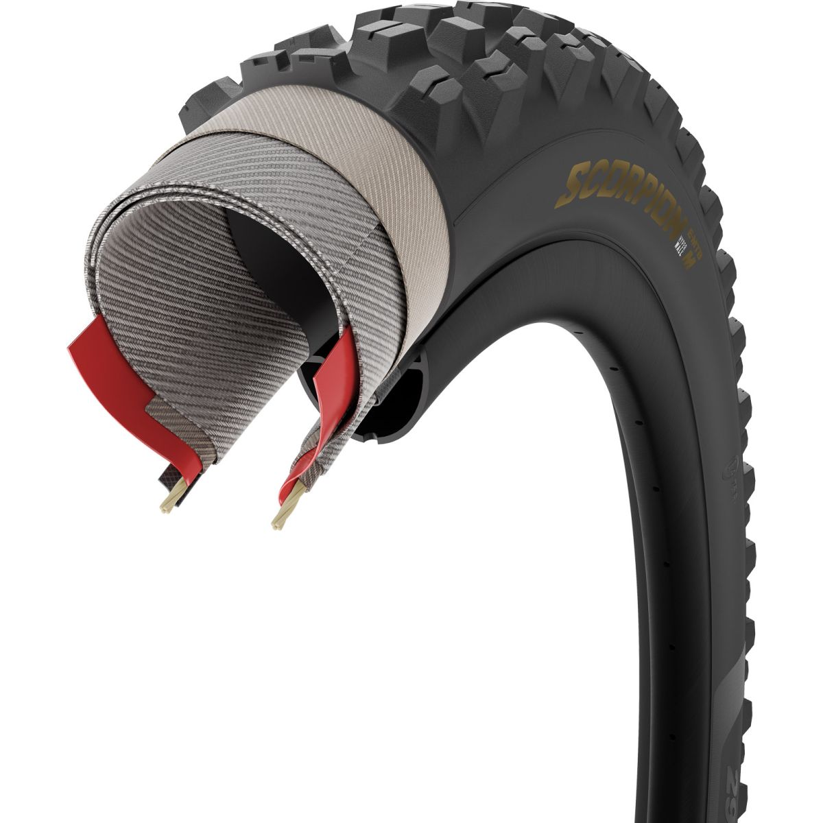 Pirelli Scorpion™ E-MTB M je odolný plášť navrhnutý pre horské elektrobicykle, ktoré jazdia v rôznorodom teréne – od tvrdého podkladu až po mäkší lesný trail. Jeho dezén je navrhnutý tak, aby dokázal plynule prechádzať medzi rôznymi povrchmi a zároveň udržiaval rovnováhu medzi záberom a rýchlym odvaľovaním.