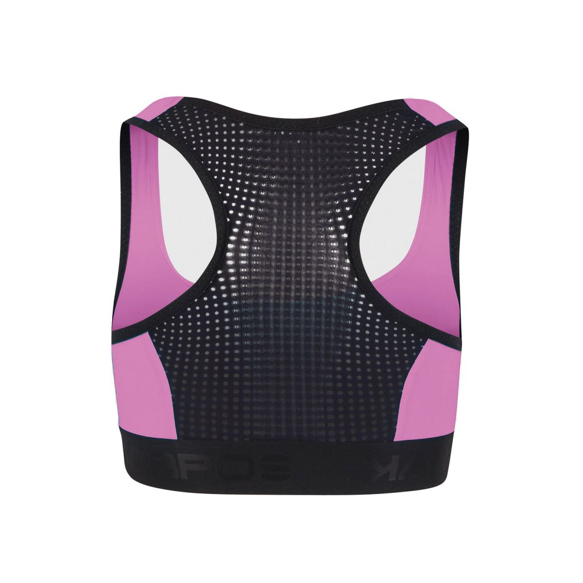 - Predný diel podprsenky je vyhotovený z dvojitej vrstvy elastického polyamidového materiálu Sensitive® Plus (130 g/m²), ktorý účinne odvádza vlhkosť, rýchlo schne a zabezpečuje optimálnu termoreguláciu počas intenzívneho pohybu. Taktiež zaisťuje pevné držanie a pohodlie aj pri náročných pohyboch a znižuje riziko nežiadúcich posunov.