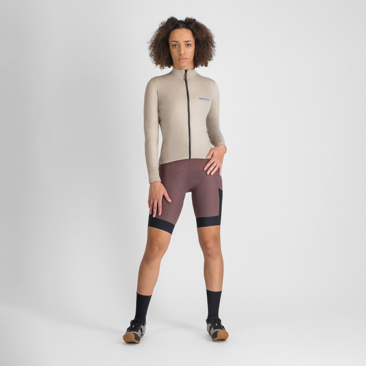 - Nenápadné logo Sportful – čistý, funkčný a nadčasový dizajn.
