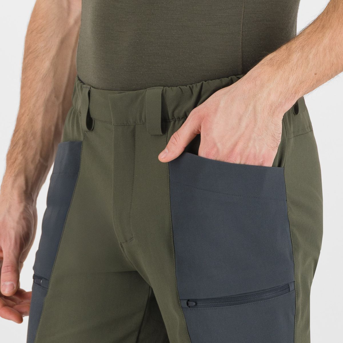 Vnútorná vrstva z jemnej merino vlny poskytuje príjemný dotyk na pokožke, udržiava teplo a zároveň reguluje vlhkosť počas pohybu. Vonkajšia tkanina je odolná, pružná a priedušná, takže nohavice zvládnu celodenné nosenie aj v náročnejšom teréne.
