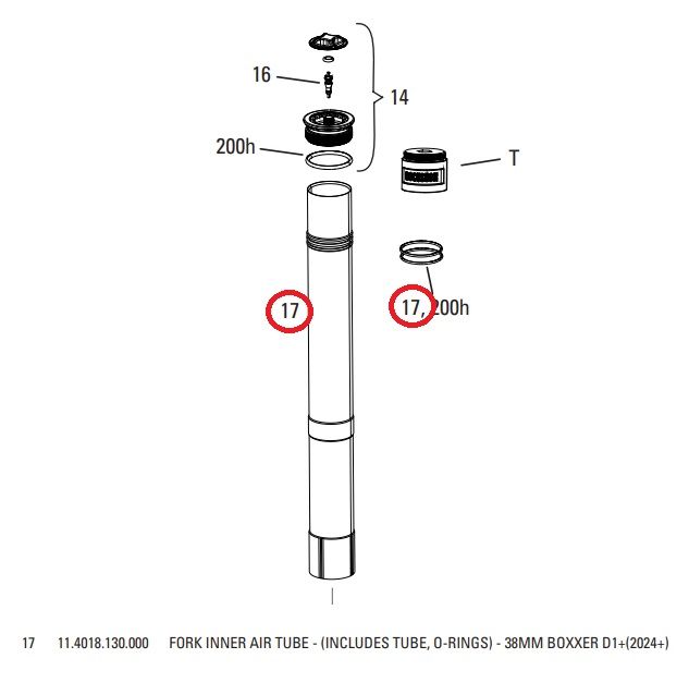 FORK INNER AIR TUBE - (INCLUDES TUBE, O-RINGS) - 38MM BOXXER D1+(2024+)