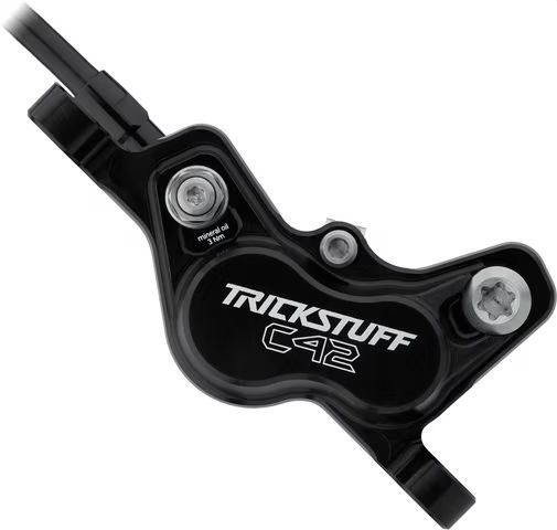 Díky svému silnému hydraulickému poměru 9 mm na pístu pumpy v páce k 14/17 mm pístkům ve třmenu, vhání brzdový olej do čtyř pístů s velkým přetlakem a bezpečně vás zastaví, se objeví nečekaná překážka. Duté písty z nerezové oceli, které nespálíte + brzdový olej Bionol, zabrání přehřátí a neomezí tok oleje při jízdě dolů. Vyhnete se tak zbytečným přestávkám na chlazení, tedy pokud ho nebudete potřebovat vy sami.
