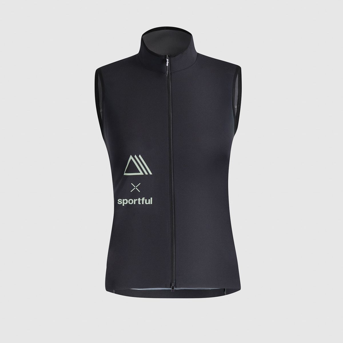 Strih je formovaný pre pohyb v predklone, bez prebytočnej látky na bruchu a s mierne predĺženým zadným panelom, ktorý chráni spodnú časť chrbta. Vesta nemá vlastné zadné vrecká, aby si zachovala čistý profil a čo najnižší odpor vzduchu. Prístup k vreckám dresu pod ňou zabezpečuje dvojcestný zips od svetoznámeho japonského výrobcu YKK®, ktorý sa dá ovládať aj v rukaviciach. Zadný panel z priedušnej tkaniny zlepšuje ventiláciu počas stúpania, zatiaľ čo zvýšený golier stabilizuje teplotu v oblasti krku a chráni pred prúdom vzduchu.