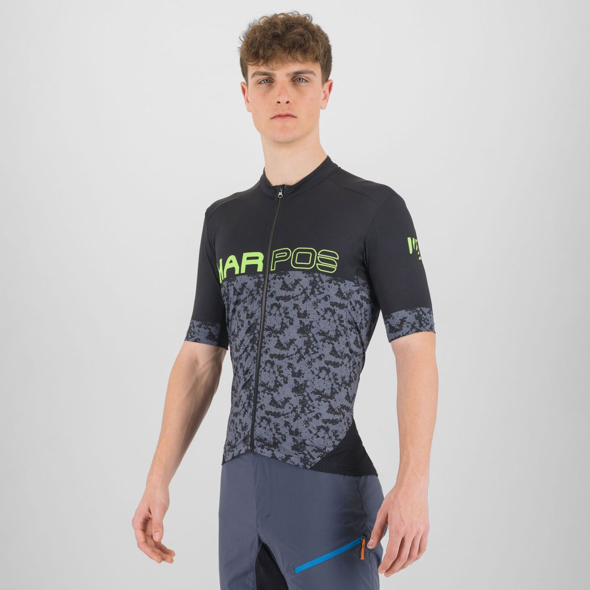 Letný MTB dres Karpos Jump je vyhotovený z dvojice funkčných materiálov, ktoré poskytujú optimálny komfort aj počas celodenného jazdenia. Na prednej strane sa nachádza hebký, elastický materiál, ktorý zaisťuje priliehavé sedenie. Lepšie odvádzanie potu od pokožky (a to aj pri nosení ruksaku) zabezpečuje dierkovaný materiál na rukávoch a chrbte. Pre odloženie si všetkých potrebných vecí je dres vybavený 3 priestrannými vreckami a menším vreckom so zipsom na kľúče.