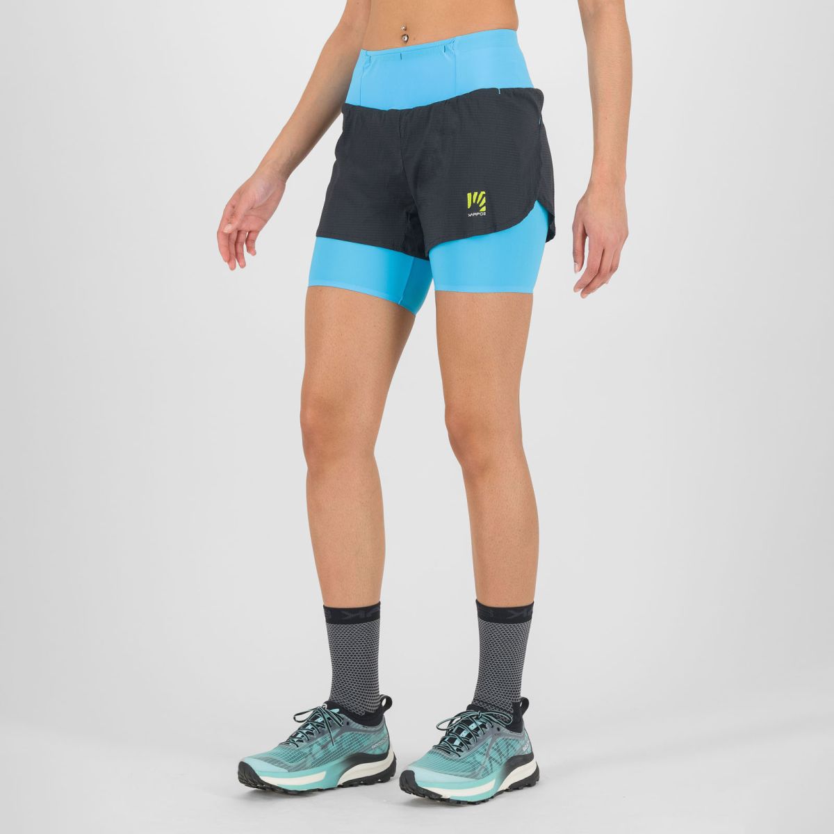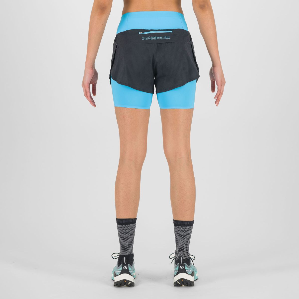 Dámske bežecké šortky Karpos Cengia boli navrhnuté tak, aby si sa počas tréningov alebo pretekov cítil komfortne a nemusel nosiť bežecký batoh. Pozostávajú z troch častí: vrchných šortiek, vnútorných boxeriek a opasku so štyrmi integrovanými vreckami (vnútorné boxerky sú dlhšie ako vrchné šortky a siahajú do polovice stehien). Vďaka tejto kombinácií sú priedušné, rýchloschnúce a zároveň kompresné.