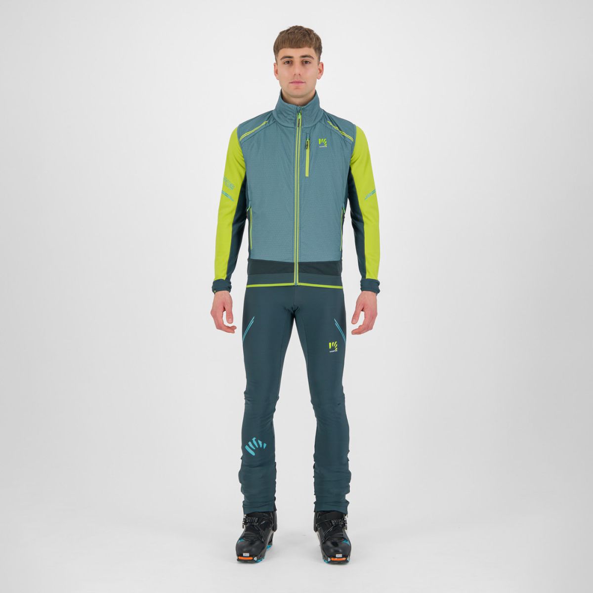 Pánska zimná vesta Karpos Alagna Plus Evo je primárne určená na skialpinizmus, ale vďaka svojej univerzálnosti je ideálna aj na ostatné outdoorové a športové aktivity. Predná strana sa vyznačuje hybridnou konštrukciou, ktorá poskytuje ochranu pred vetrom, výbornú priedušnosť a údržbu tepla. Zadná časť je vyhotovená z hrejivého materiálu s oderuvzdorným povrchom. Vpredu, ako aj na všetkých vreckách sa nachádza kvalitný zips YKK® Vislon pre ľahké a rýchle zapínanie/rozopínanie. Dolná časť je ukončená tenkým, pružným lemom, ktorý spolu s úzkym strihom zabezpečuje priliehavé sedenie na tele.