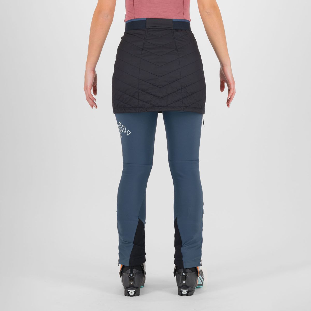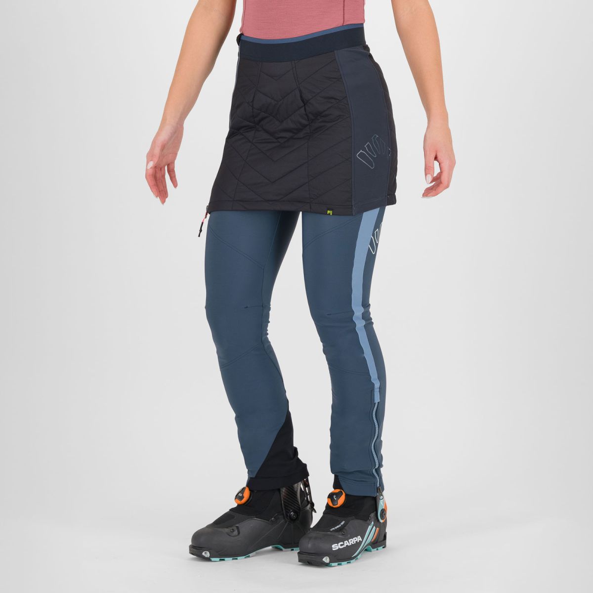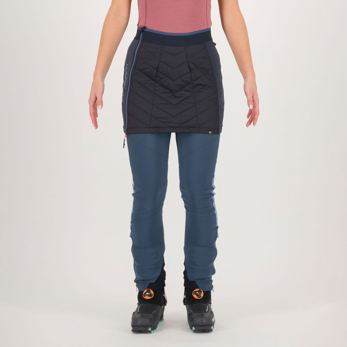 Zimná outdoorová sukňa Karpos Alagna Plus predstavuje ľahkú, hrejivú a nreprefúkavú, vrchnú vrstvu na skialp a športovanie vo veľmi chladnom počasí. Charakterizuje ju jedinečný dizajn, funkčné materiály a bočný zips uľahčujúci obliekanie/vyzliekanie. Pre väčší komfort a slobodu v pohybe je táto prešívaná sukňa vybavená širokým elastickým lemom v páse a priedušnými a pružnými časťami na bokoch.