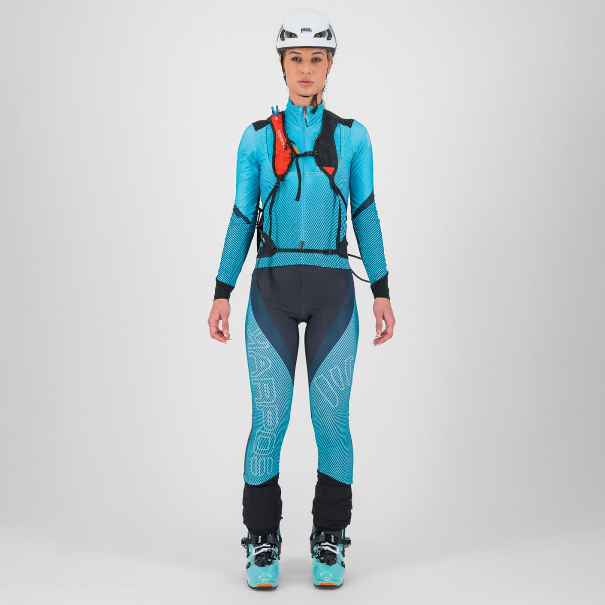 Dámska pretekárska skialpová kombinéza Karpos Race bola vyvinutá v spolupráci s talianskym reprezentačným tímom. Je vyrobená z elastického, priedušného a vysoko odolného materiálu s vysokým podielom Lycry. Okolo pása sa nachádza špeciálny zips, pomocou ktorého sa dá kombinéza rozdeliť na dva diely. Táto inovácia poskytuje všetky výhody dvojdielnej skialpovej kombinézy. Kombinéza je vhodná nielen na preteky, ale využijete ju aj ako komfortnú druhú vrstvu pri tréningoch a túrach v miernejšich podmienkach. Vďaka originálnym vylepšeniam, špeciálnemu strihu a použitým materiálom sa kombinéza radí medzi to najlepšie, čo bolo vyrobené v tejto kategórii.